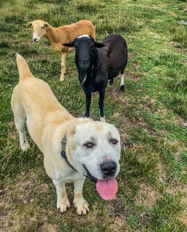 Livestock & Environmental Exposure: Puppies are introduced to goats, sheep, chickens, turkey, guinea fowl, rabbits, cats, various new environments, and children.